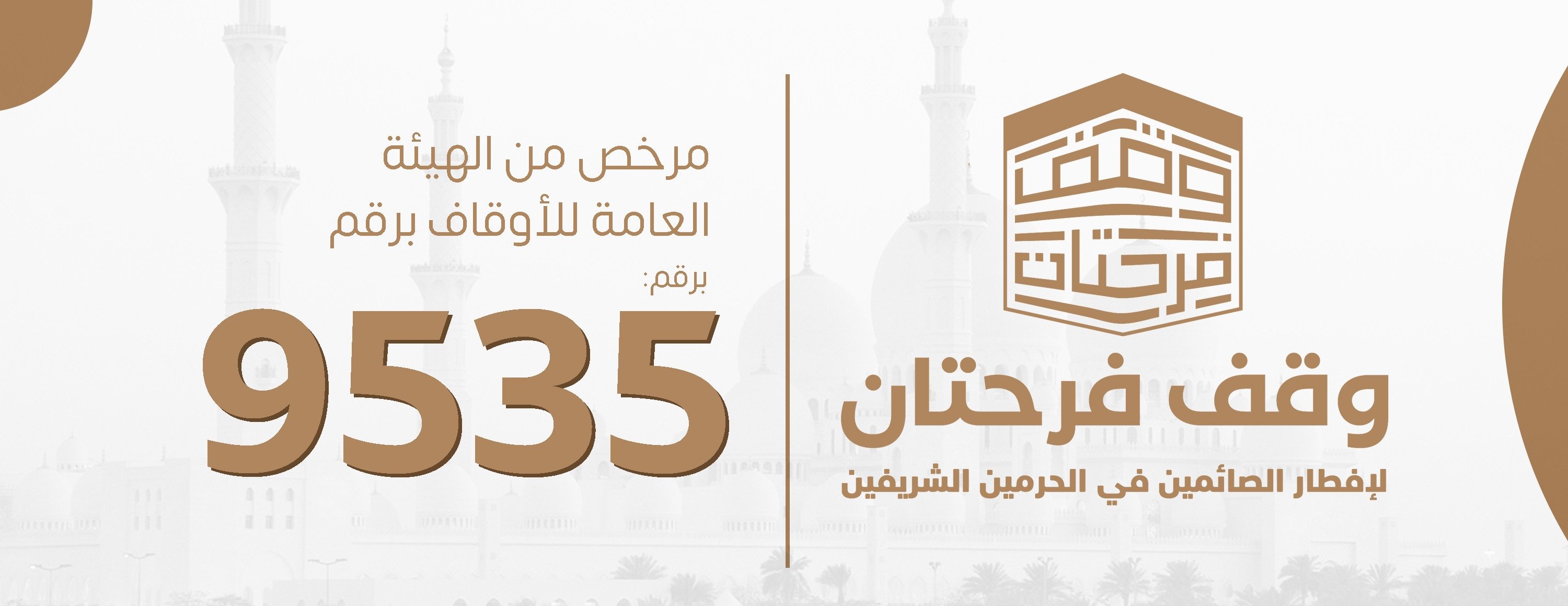 في " وقف فرحتان " نعتبر إفطار الصائمين في الحرمين الشريفين والسقيا والاطعام في داخل أروقته وساحاته من اسمى رسائل العطاء التي نعتز بتحقيقها .